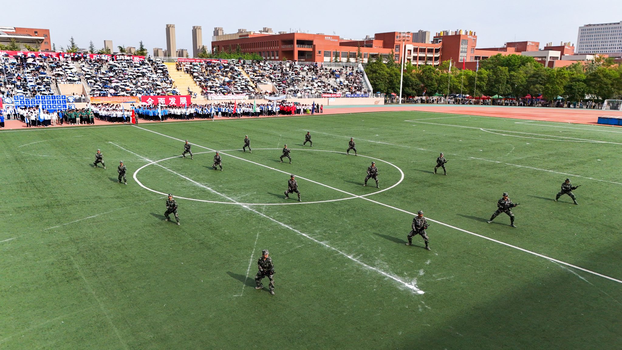 閉幕式上,我校軍事社團“夢(mèng)幻特衛隊”進(jìn)行風(fēng)采展示,通過(guò)戰術(shù)隊形、摔跤格斗等戰斗科目硬核表演,展現鋼鐵般的紀律與力量。