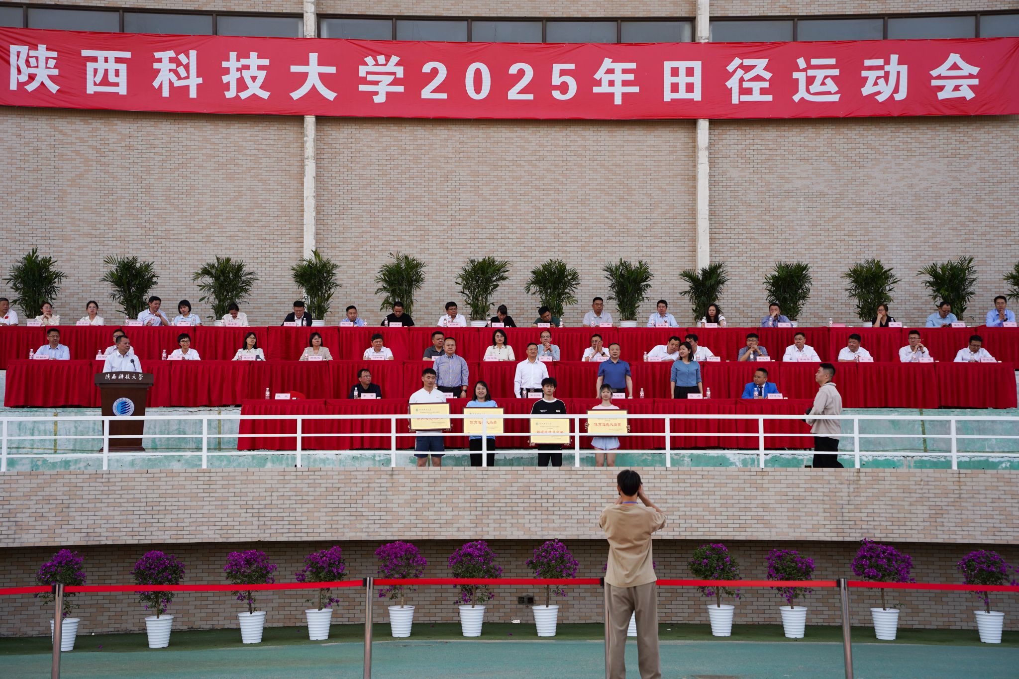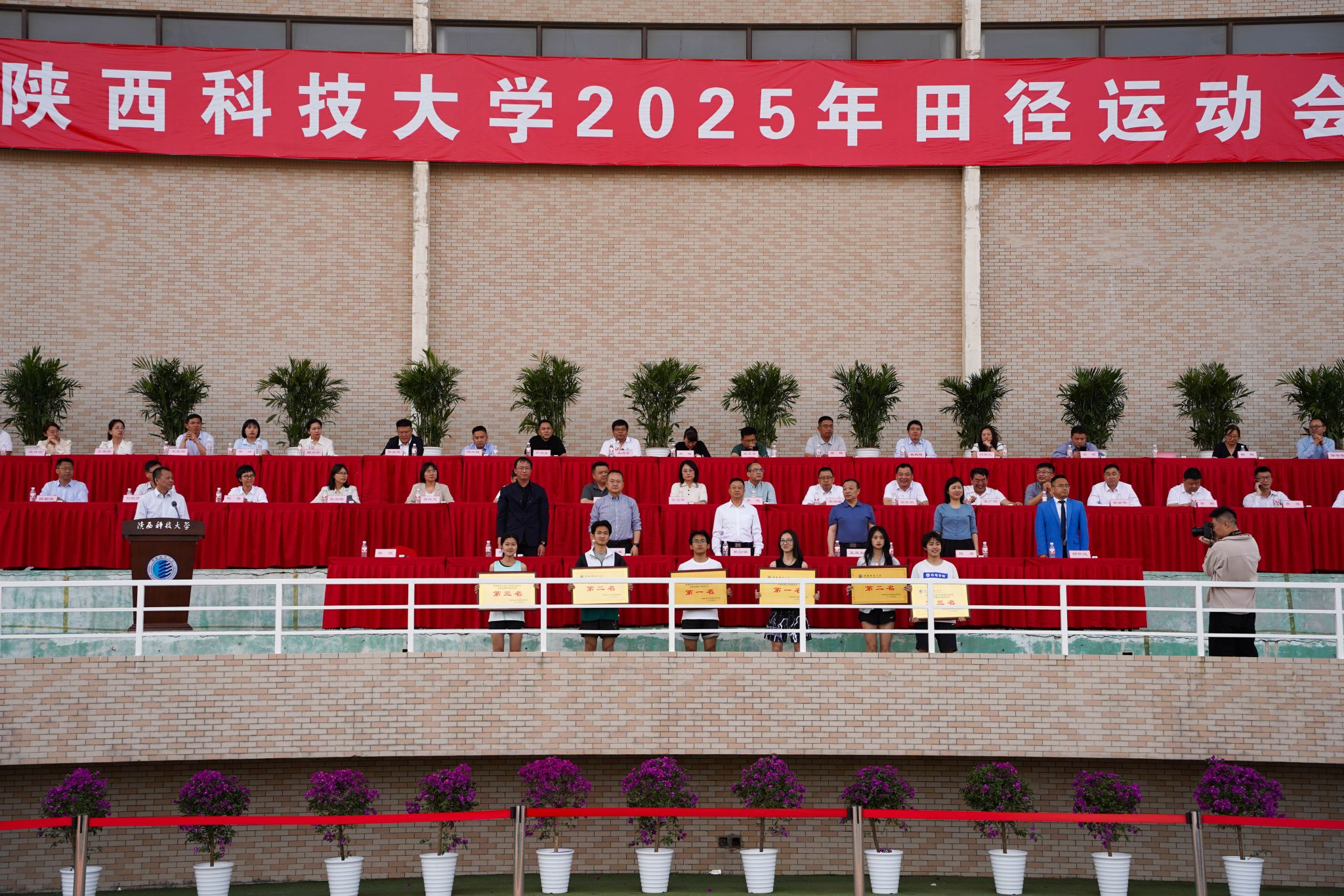 4月23日下午,經(jīng)過(guò)兩天奮力拼搏、緊張激烈的比賽,我校2025年田徑運動(dòng)會(huì )閉幕,三項校紀錄被打破。校長(cháng)黃劍鋒,黨委副書(shū)記王道安、李學(xué)軍,校運動(dòng)會(huì )組委會(huì )成員參加閉幕式。閉幕式由組委會(huì )執行副主任、校工會(huì )主席陳援主持。